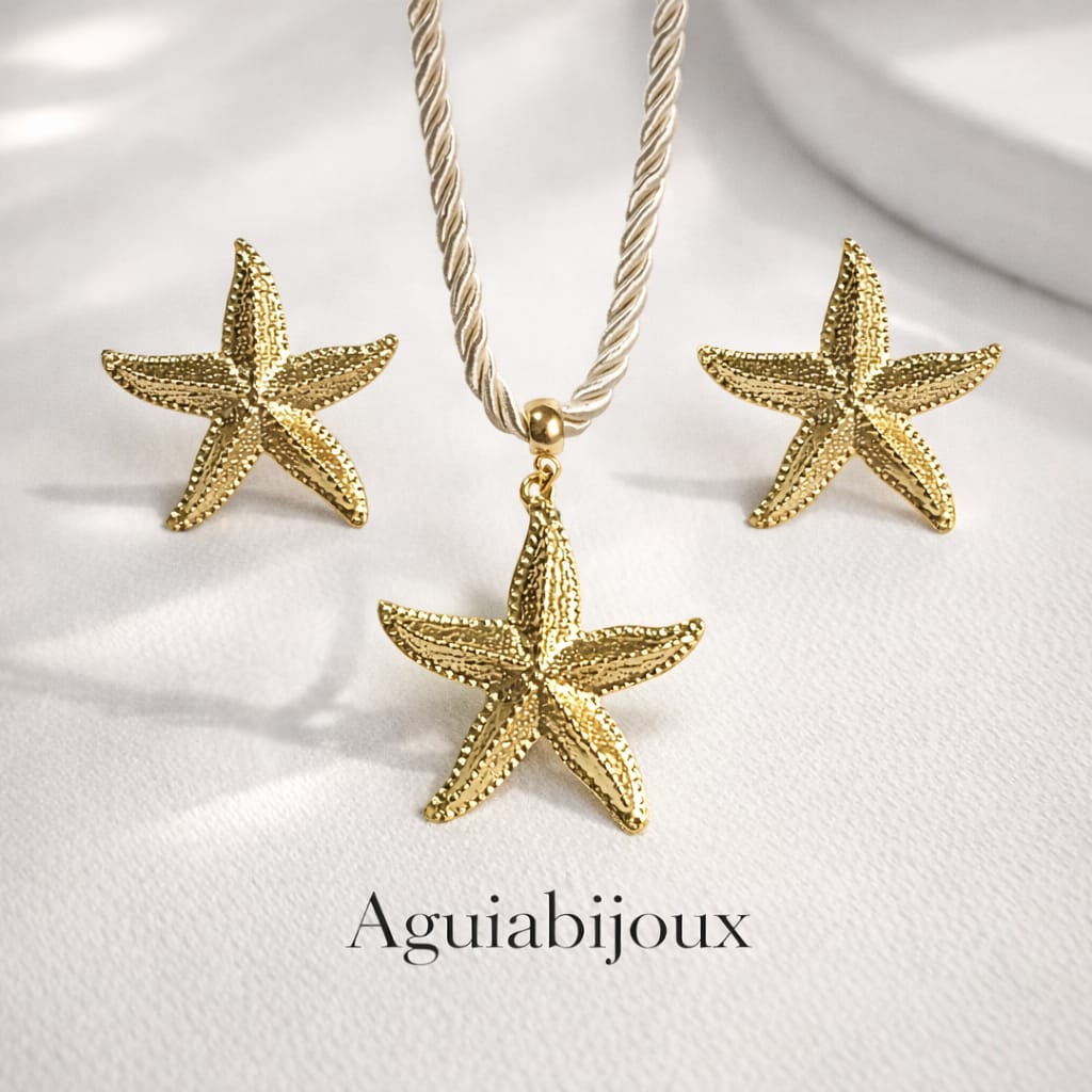 Um conjunto delicado composto por colar e brincos em formato de estrela, trazendo brilho, charme e um toque especial ao seu visual